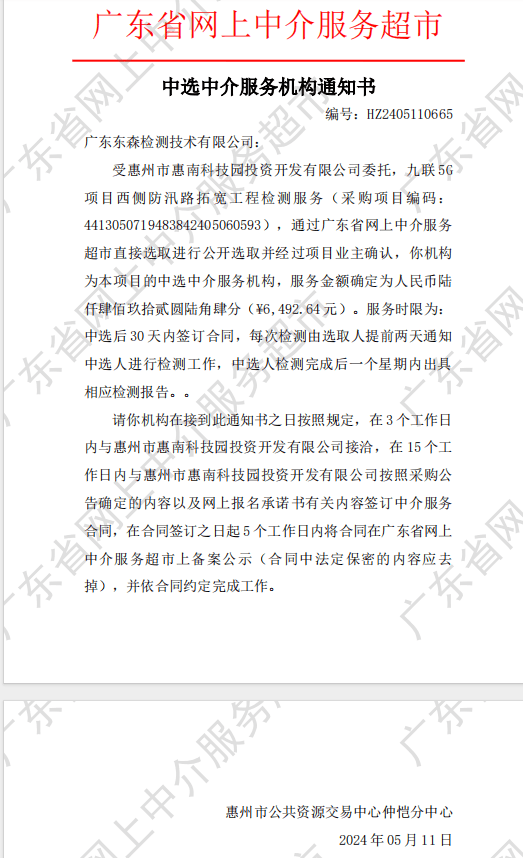 【中選公示】九聯(lián)5G項目西側(cè)防汛路拓寬工程檢測服務(wù)