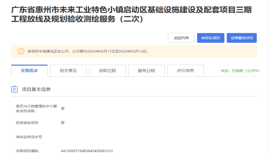 【公示】廣東省惠州市未來(lái)工業(yè)特色小鎮(zhèn)啟動(dòng)區(qū)基礎(chǔ)設(shè)施建設(shè)及配套項(xiàng)目三期工程放線(xiàn)及規(guī)劃驗(yàn)收測(cè)繪服務(wù)(二次)