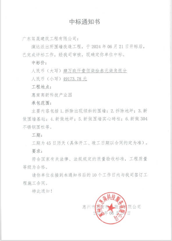 【中標(biāo)通知】演達派出所圍墻改造工程