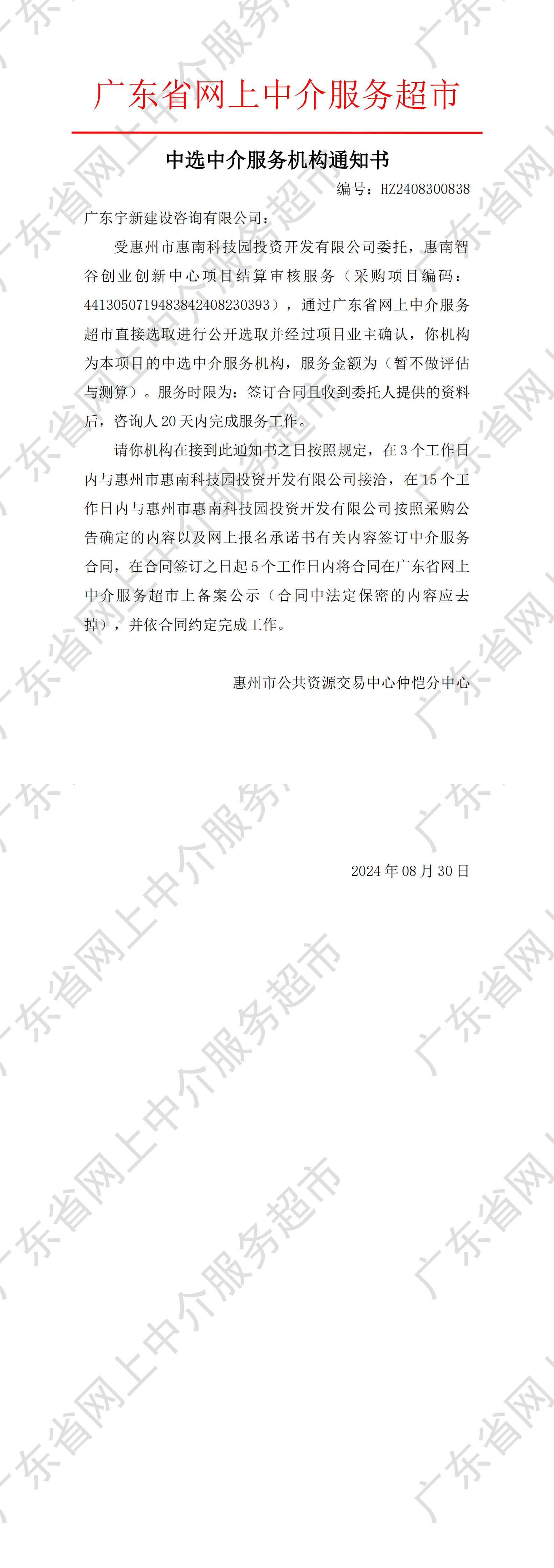 【中標(biāo)通知】惠南智谷創(chuàng)業(yè)創(chuàng)新中心項(xiàng)目結(jié)算審核服務(wù)