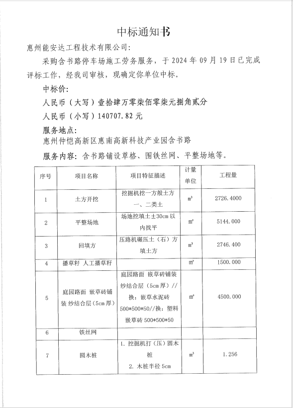 【中標(biāo)通知】采購(gòu)含書路停車場(chǎng)施工勞務(wù)服務(wù)