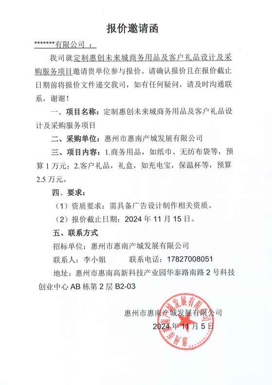 定制惠創(chuàng)未來城商務用品及客戶禮品設計及采購服務項目