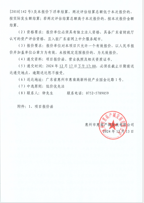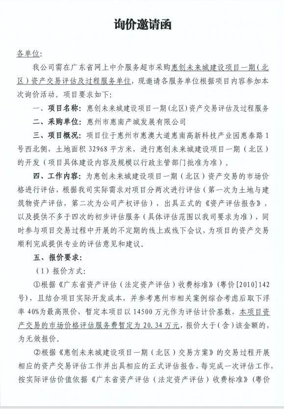 惠創(chuàng)未來城建設(shè)項目一期(北區(qū))資產(chǎn)交易評估及過程服務(wù)單位