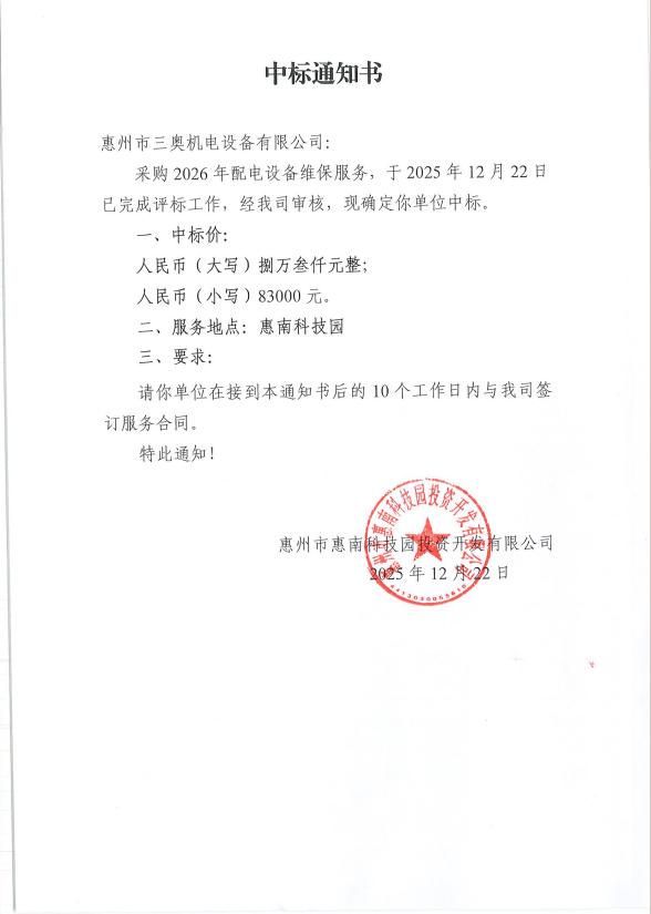 【中標(biāo)通知】采購2026年配電設(shè)備維保服務(wù)