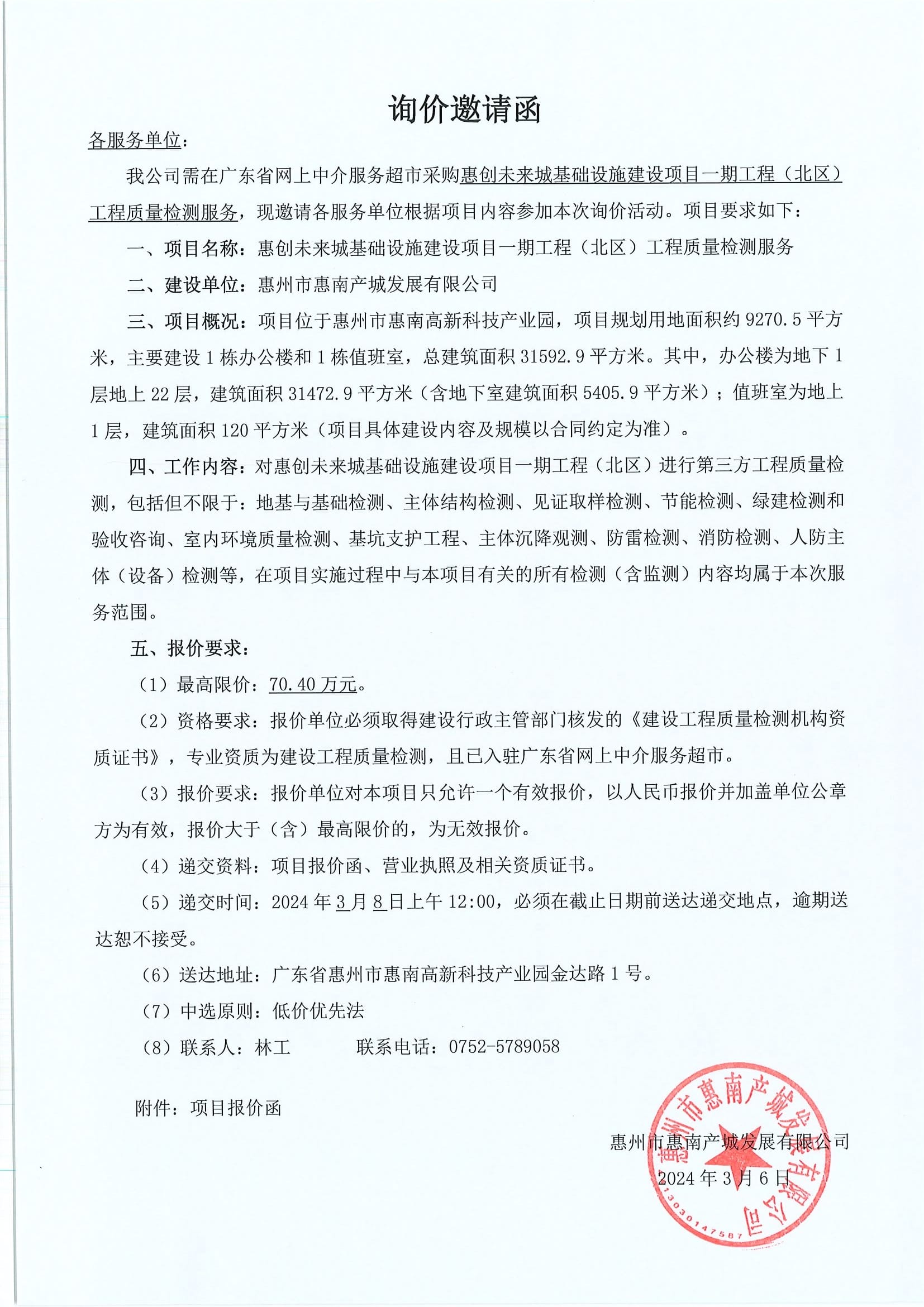 惠創(chuàng)未來城基礎(chǔ)設(shè)施建設(shè)項目一期工程(北區(qū))工程質(zhì)量檢測服務(wù)