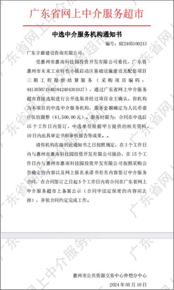 【中選公示】廣東省惠州市未來工業(yè)特色小鎮(zhèn)啟動(dòng)區(qū)基礎(chǔ)設(shè)施建設(shè)及配套項(xiàng)目三期工程勘察結(jié)算服務(wù)