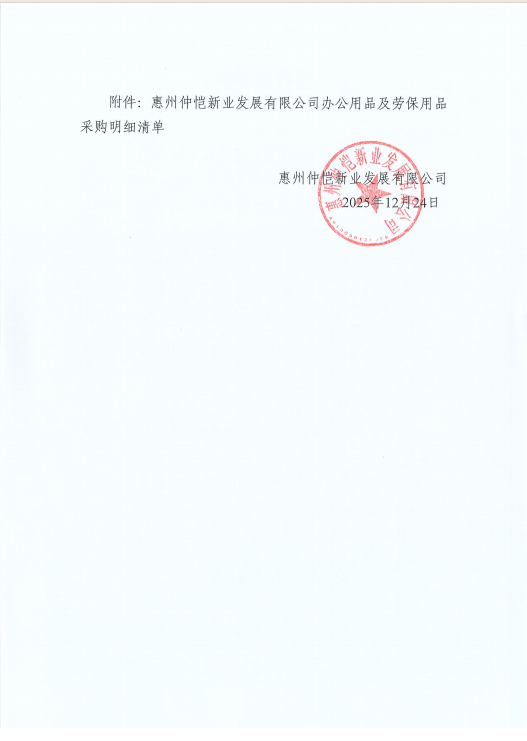 【報(bào)價(jià)邀請(qǐng)函】惠州仲愷新業(yè)發(fā)展有限公司2026年度辦公用品及勞保用品定點(diǎn)采購(gòu)項(xiàng)目